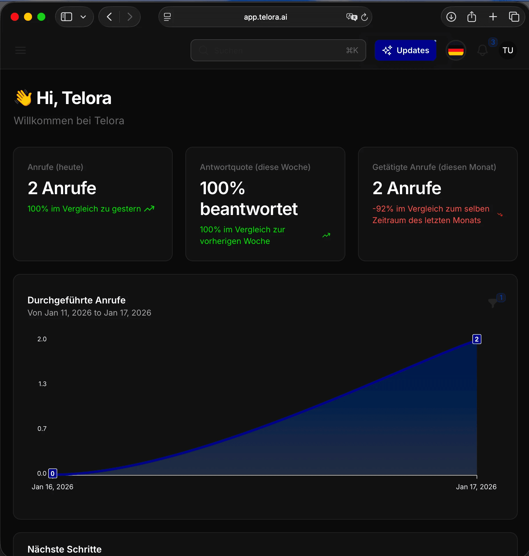 Telora ist eine Self Service Platform, mit der Unternehmen in wenigen Minuten Telefon Agenten erstellen, starten und optimieren können.